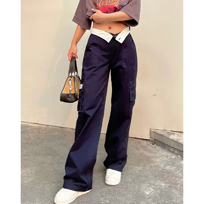 Diese marineblaue Cargo-Jeans kombiniert Stil, Komfort und Vielseitigkeit. Sie ist aus hochwertiger Baumwolle und Polyester gefertigt und bietet eine weite, elegante Passform, die sich jedem Anlass anpasst.
