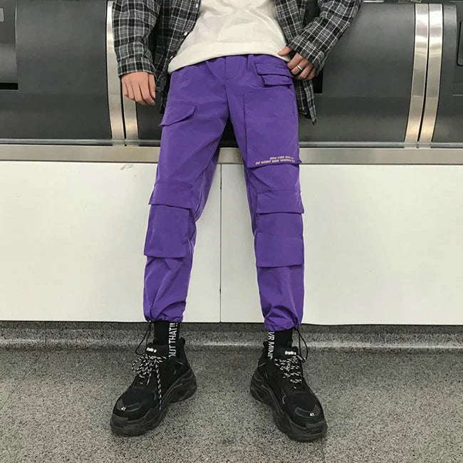 Diese lila Cargo-Hose ist das perfekte Streetwear-Piece. Mit elastischem Bund, schmalem Schnitt und praktischen Taschen kombiniert sie Komfort und modernen Stil. Ideal für Männer, die auffallen wollen, ohne auf Bequemlichkeit zu verzichten.