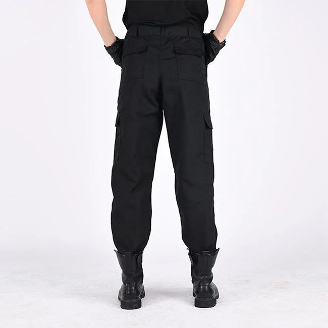 Diese dunkelschwarze Cargo-Hose überzeugt durch ihren modernen Schnitt und ihr funktionales Design. Mehrere Taschen auf Hüft- und Kniehöhe bieten Platz für Ihre Essentials. Der leicht schmal zulaufende Saum sorgt für eine elegante Silhouette.