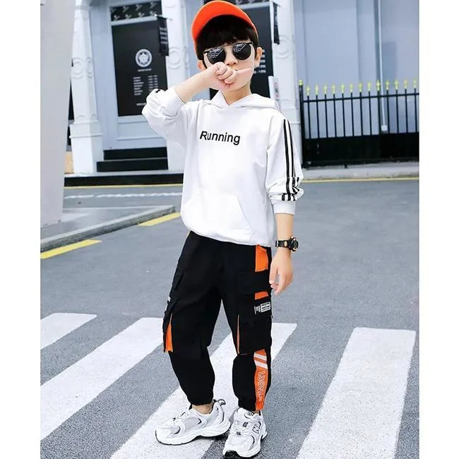 Dieser sportliche Cargo-Jogger für Jungen vereint Stil und Funktion. Dank elastischem Bund, weichem Stoff und praktischen Taschen kann sich Ihr Kind frei bewegen, rennen und spielen, ohne Kompromisse beim Komfort einzugehen. Die Farbkombination aus Schwarz und Orange verleiht dem Look Energie und Persönlichkeit.